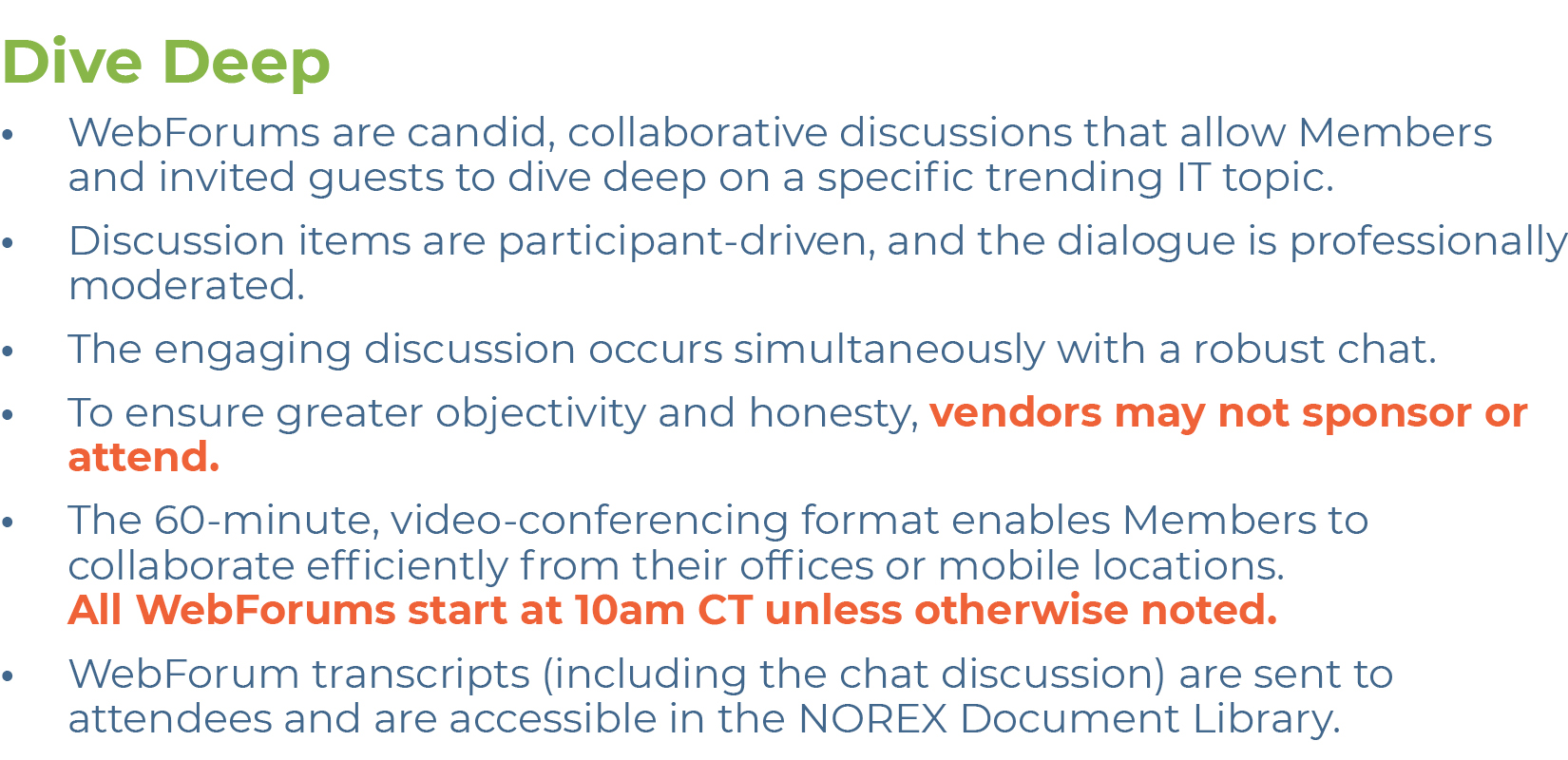 This event is only for NOREX Select Members from Forbes / Fortune 1000 organizations.