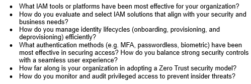 What is your organization’s approach for ensuring a well-governed, scalable, and security-focused IAM program? Connect with IT peers from large enterprise organizations for this 3-hour, professionally moderated Virtual Roundtable to discuss strategies for securing digital identities, managing user access, and ensuring compliance.
