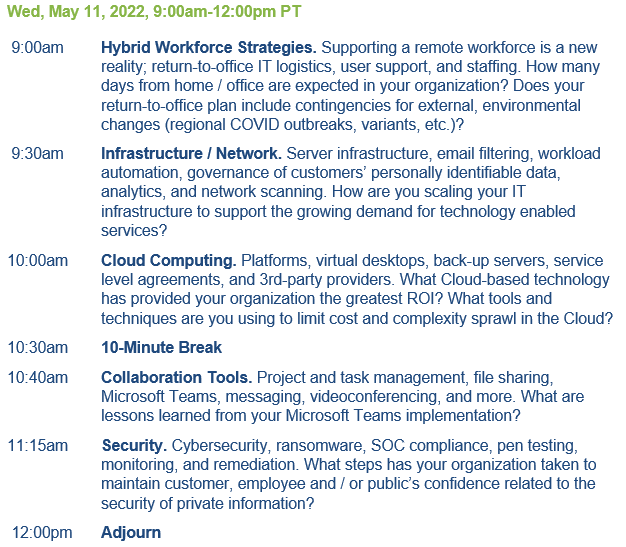 Join fellow IT leaders to exchange strategies and solutions during this professionally moderated Virtual IT Roundtable to be held on Wed 5/11, 9am-12pm PT. The engaging discussion occurs simultaneously with a robust chat. To ensure greater objectivity and honesty, vendors may not sponsor or attend.